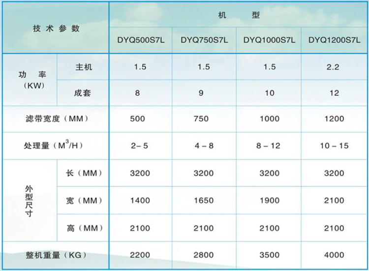 緊湊型帶式壓濾機(jī)主要型號(hào)的技術(shù)參數(shù):
