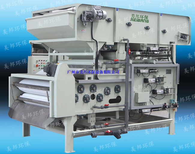 1.采用了世界較新壓濾工藝,重點(diǎn)在濃縮工藝和壓濾工藝有很大的技術(shù)提升,配備了獨(dú)立的濃縮機(jī)、增加了一條網(wǎng)帶、選用了永不跑偏機(jī)構(gòu)。該機(jī)相比普通機(jī)型的主要優(yōu)點(diǎn)為:處理量提高,濾餅含水率降低,沖洗水干凈,可靠性高.