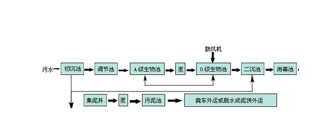 原水→格柵→調(diào)節(jié)池→提升泵→生物反應(yīng)器→循環(huán)泵→膜組件→消毒裝置→中水貯池→中水用水系統(tǒng)